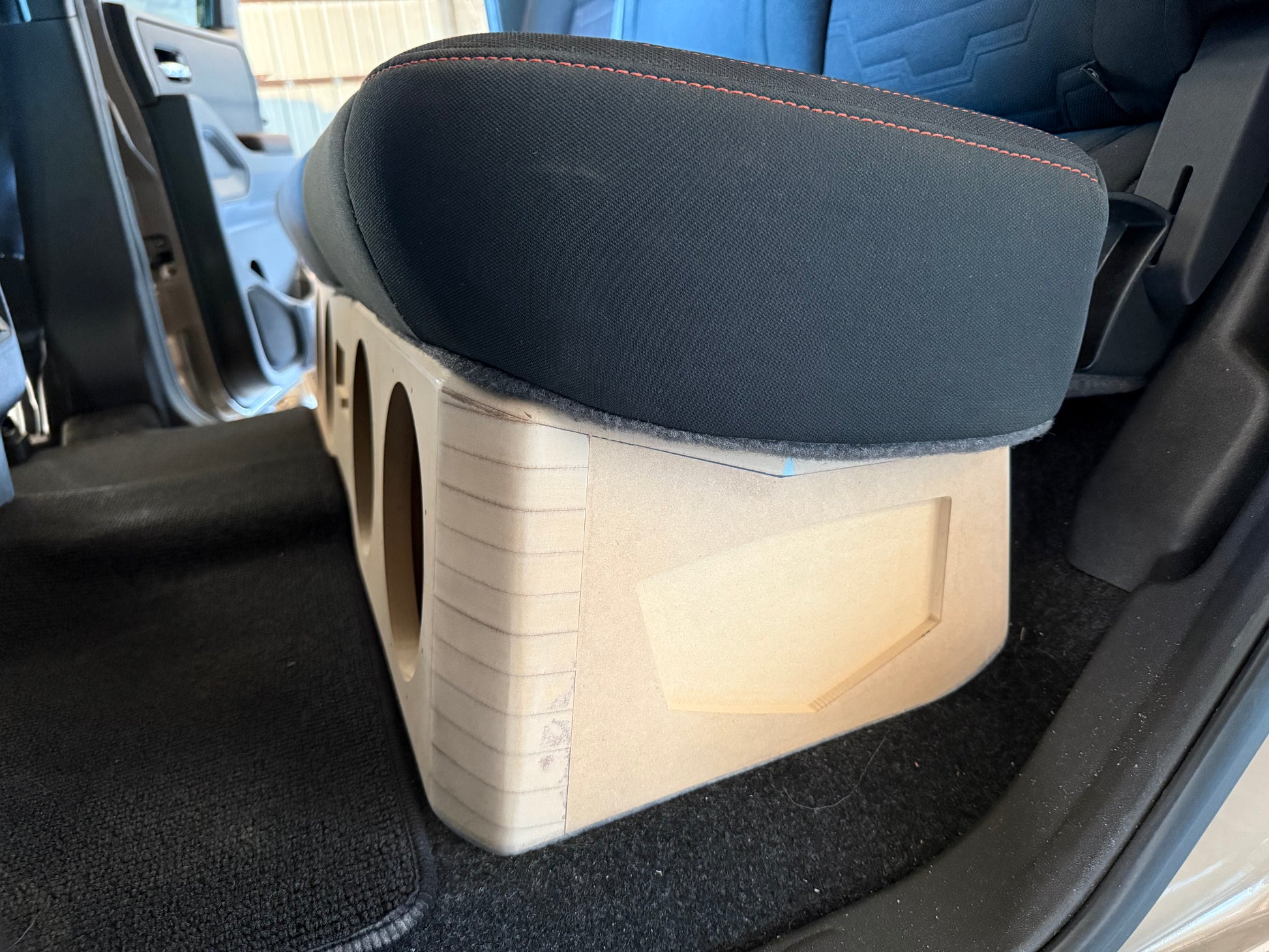 This Box is hand crafted with Premium MDF and Fiberglass made to perfectly fit under the rear seat of the Nissan Frontier crew cab trucks from 2005-2025 (Will not fit King cab models) only Crew cabs with full size rear doors.