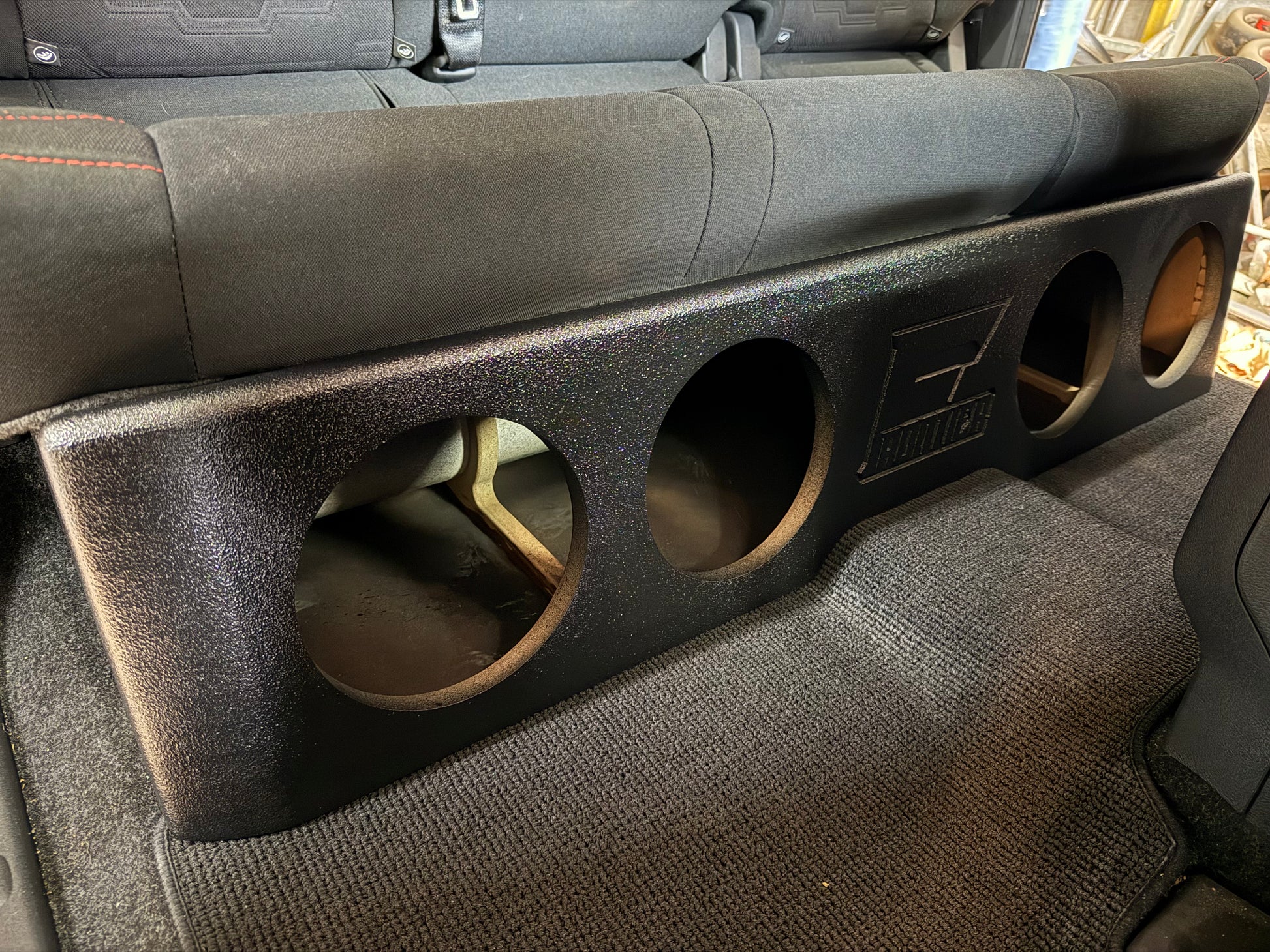 This Box is hand crafted with Premium MDF and Fiberglass made to perfectly fit under the rear seat of the Nissan Frontier crew cab trucks from 2005-2025 (Will not fit King cab models) only Crew cabs with full size rear doors.
